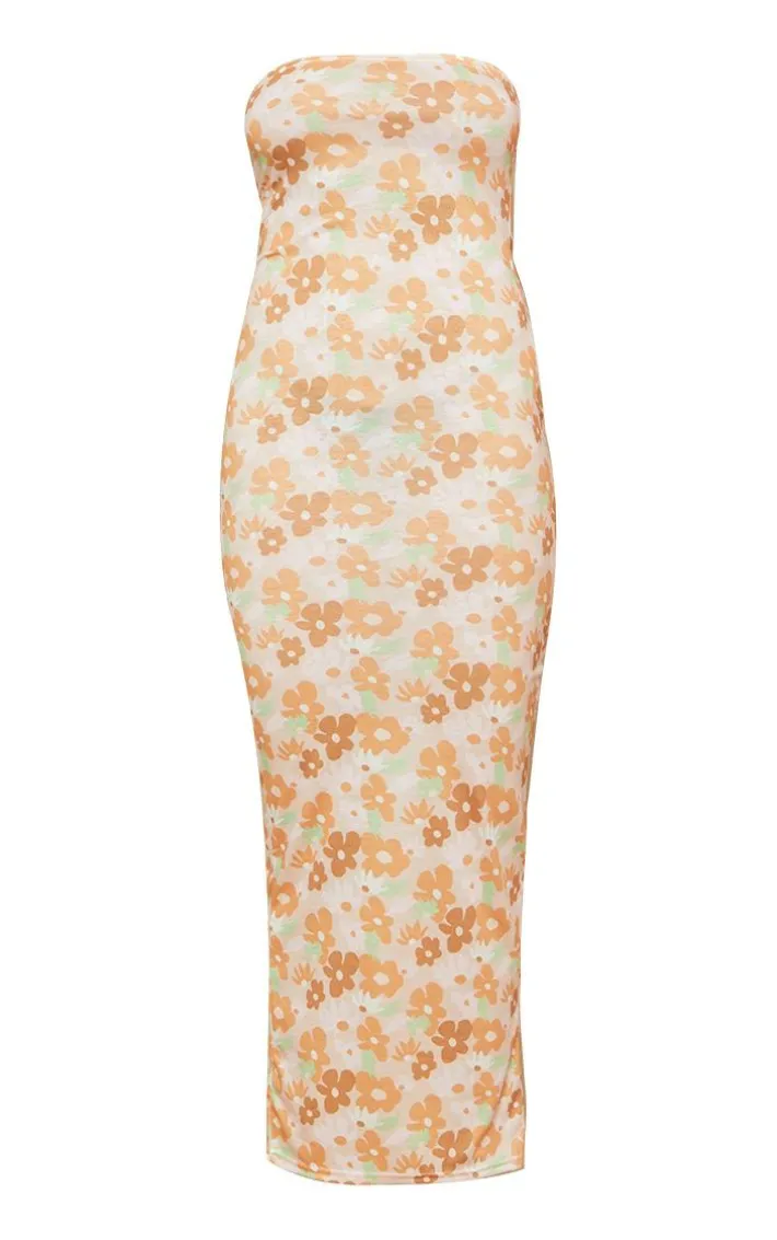 This dress is perfect for the new season. Featuring a stone pastel floral print material with a bandeau neckline and a figure-skimming fit. Team this with sandals and simple accessories to complete the look.
