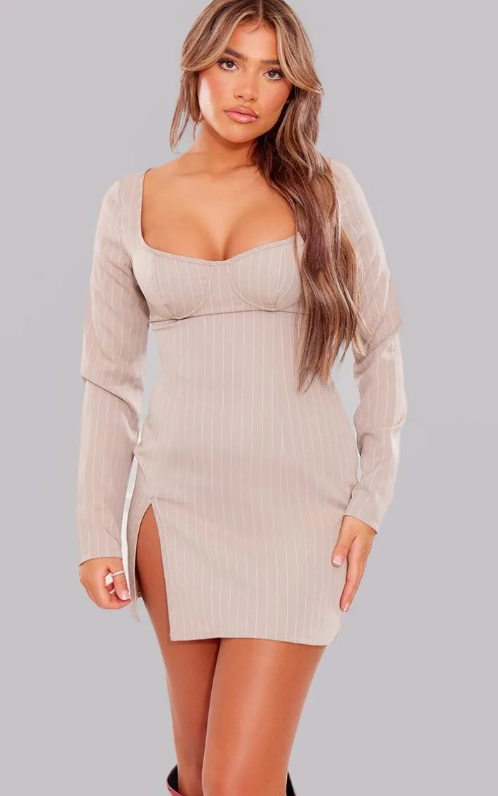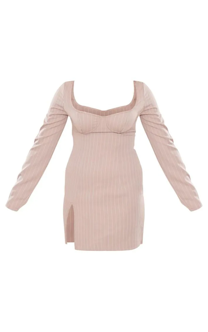 This stone pinstripe underwired detail shift dress is here to solve all of your ‘what to wear’ dilemmas. Brought to you in a stone hue pinstripe material with an underwired design, long sleeves and a shift style, what more could you ask for? Team this shift dress with statement knee length heeled boots and some gold accessories for a look that is sure to have eyes on you wherever you go.
