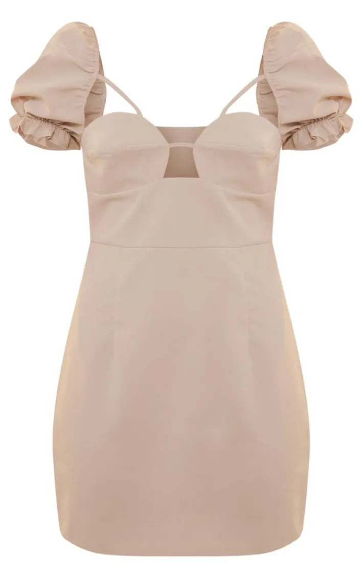 Add some chic vibes into your wardrobe collection with this stone puff sleeve cup detail cut out bodycon dress. Brought to you in a stone material with puff sleeves, cup detailing and a cut-out design, what more could you want? To complete the look style this with western style boots, gold accessories and mini bag for an insta-worthy combo.