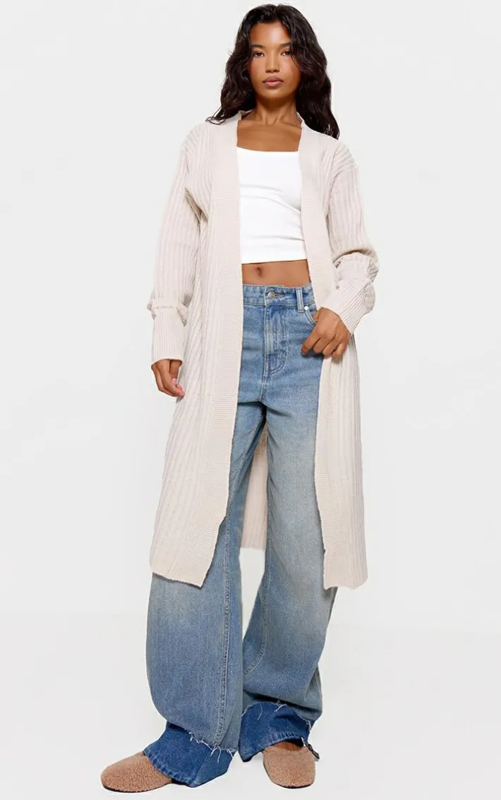 Layer up your look in style this season with this essential knitted cardigan, what’s not to love? Featuring a stone ribbed knitted material with long sleeves and a midi length, how could you say no? This beige cardigan is a must-have piece that is perfect for endless chic looks. Simply team this ribbed cardigan with a basic top, wide leg bottoms, heeled boots and gold accessories for a chic, blogger-worthy vibe.