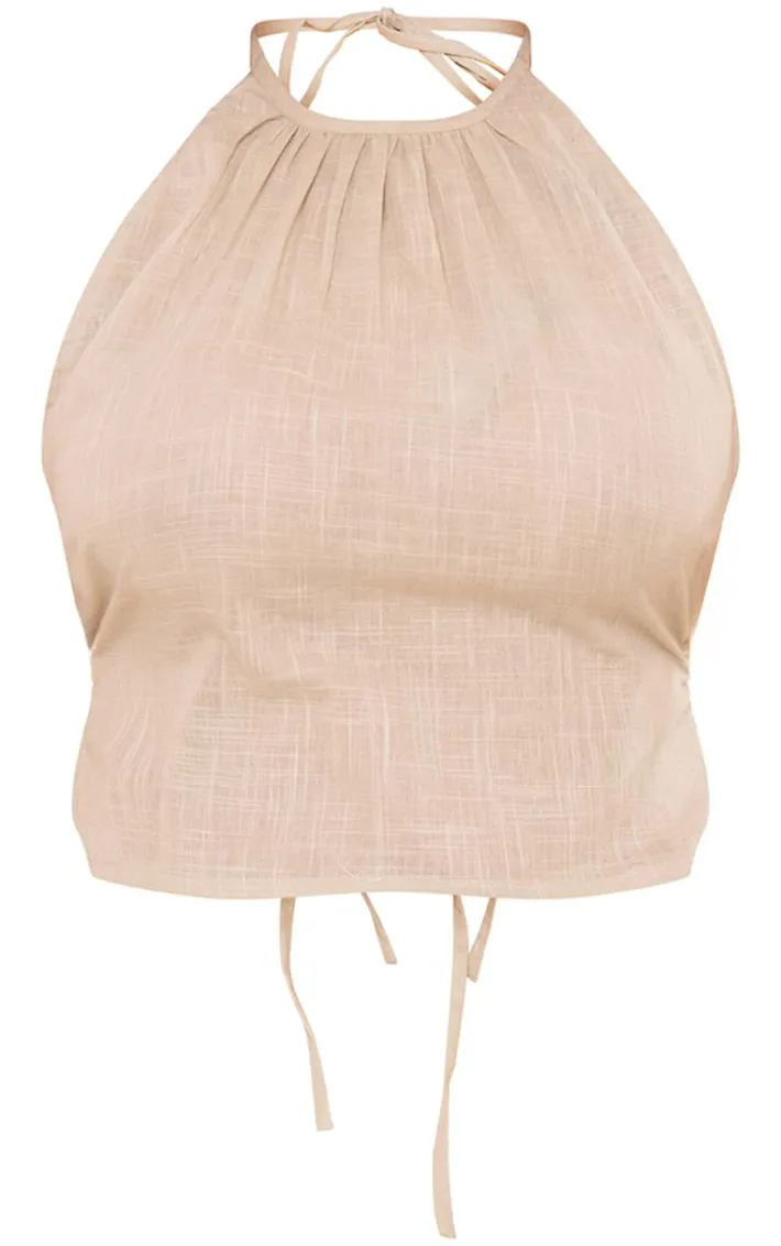 Bring all the neutral hues to your new season wardrobe with this stone ruched halter crop top. Brought to you in a stone hue material with a halterneck design, ruched detailing and a cropped fit, what’s not to love? Pair this crop top with the matching skirt, sandals and simple gold accessories for a look that is sure to have all eyes on you.
