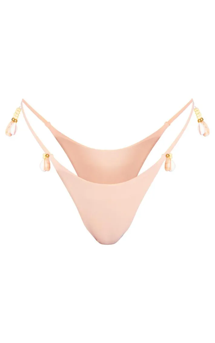 Who says you can’t look chic on the beach? Not us with these stone shell trim tie side bikini bottoms. Made with a classic stone hue fabric, a shell trim feature and tie side design, how can you resist? Just pair with the matching bikini top and your fave sun glasses for a look that won’t blend in.