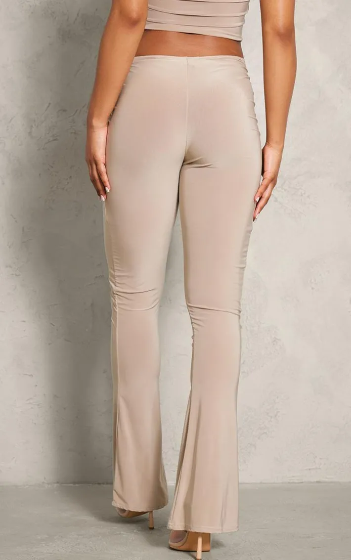 Go for all the effortlessly chic vibes this season with these stone slinky cutout foldover skinny flare pants. Made using a stone hue slinky material with a cut out design and a skinny flared style, you’ll be adding these pants straight to your basket. Pair them with the matching top, heels and your fave accessories for a fool proof finish.