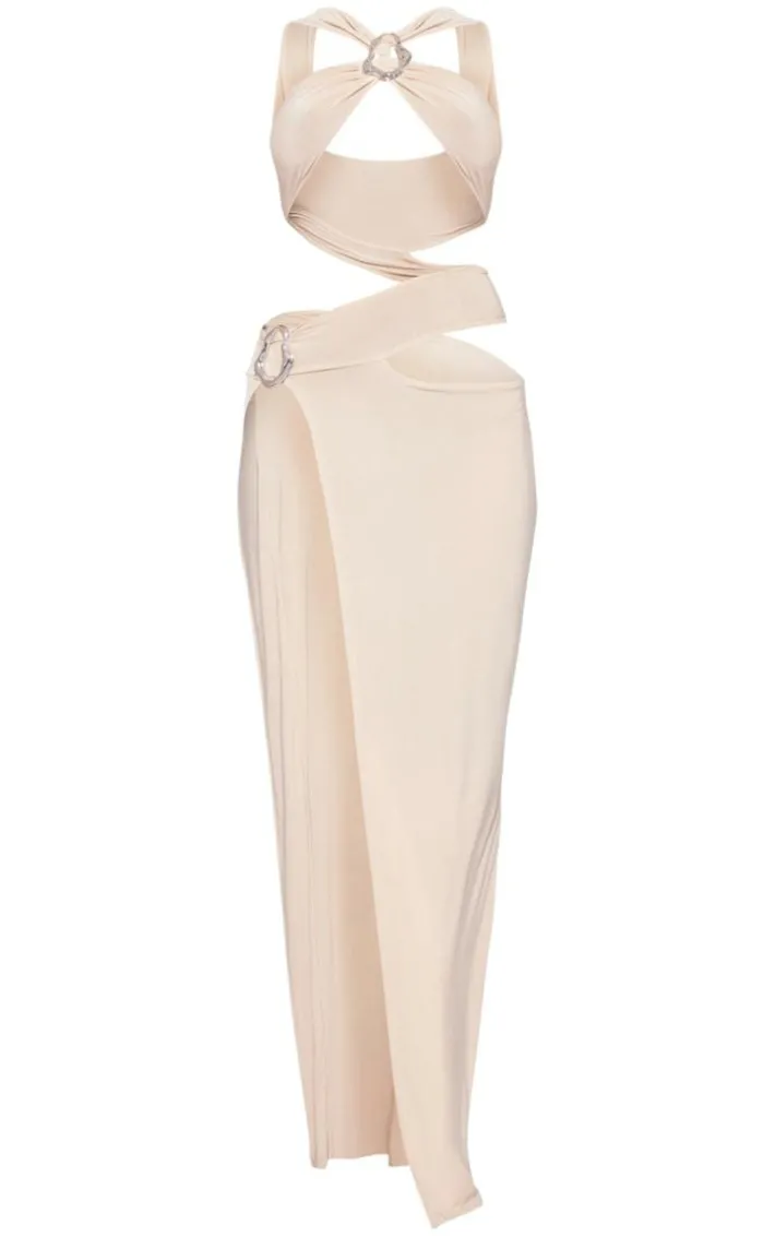 Turn heads for all the right reasons with this stone slinky trim thigh split detail maxi dress. This maxi dress is brought to you in a stone slinky material with a thigh split design and a maxi length, what’s not to love? You’ll be the topic of everyone’s conversation with this dress. Pair with clear high heels and your statement accessories for a look that we can’t stop crushing on.