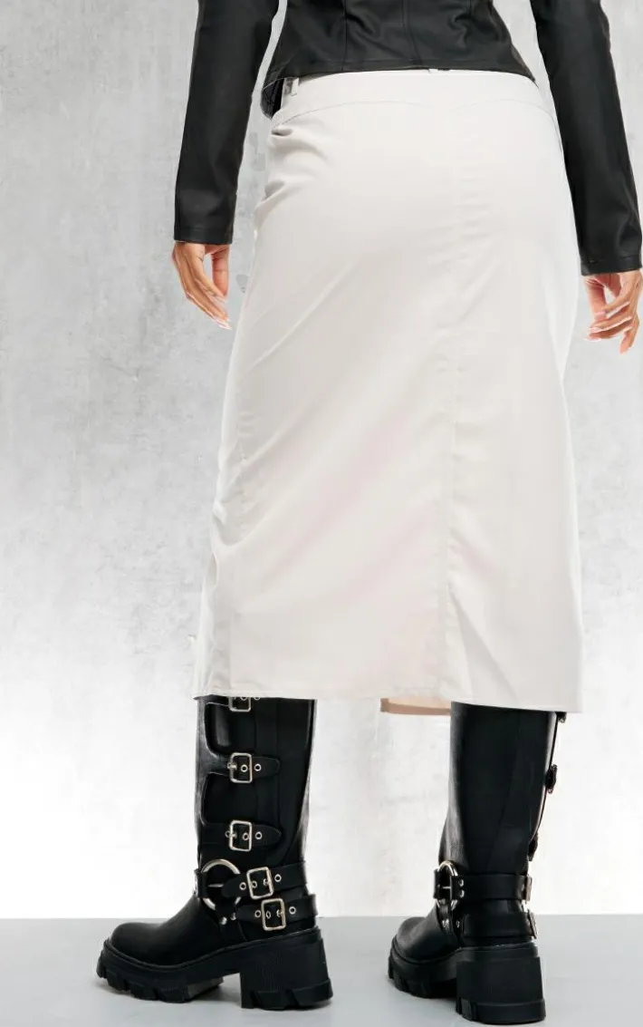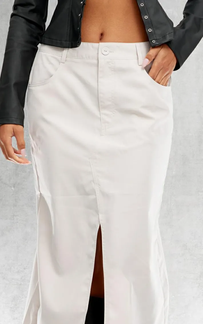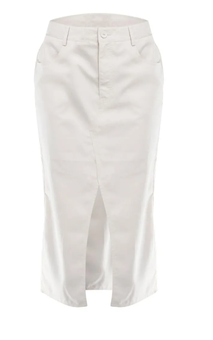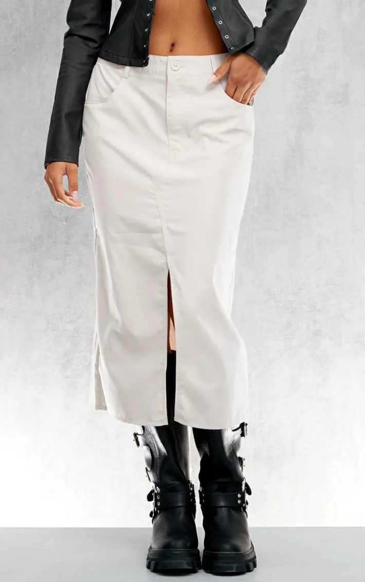 Get your new season ‘fit on point with this stone soft peached woven split front midi skirt. Brought to you in a stone hue soft peached woven material with a split front design and a flattering midi fit, how can you say no? Perfect for dressing up or down, this midi skirt is sure to be a staple vin your wardrobe. Style with a statement top and chunky boots for an off-duty look to be remembered.