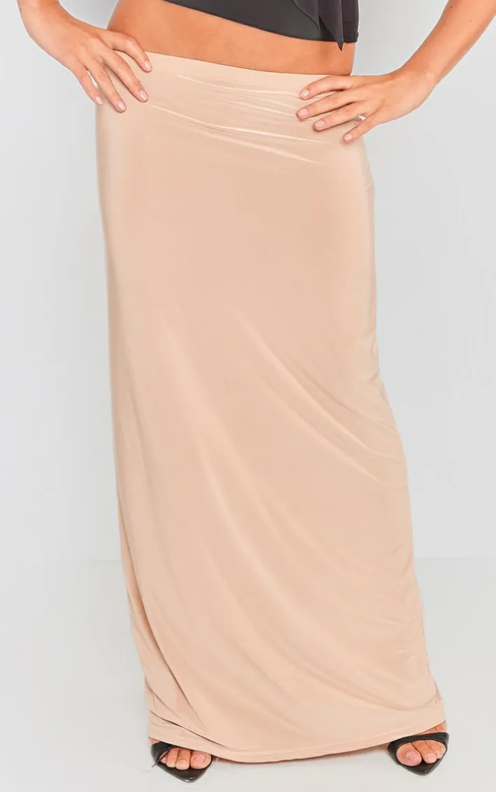 Bring all the neutral hues to your new season wardrobe with this stone soft touch low rise drapy maxi skirt. Made from a stone hue sot touch material with a low rise design, drape detailing and a flattering maxi fit, what more could you want? Perfect for taking you seamlessly from day to night, this maxi skirt is sure to become a staple in your wardrobe. Style with a crop top and heels for a look worthy of your weekend plans.