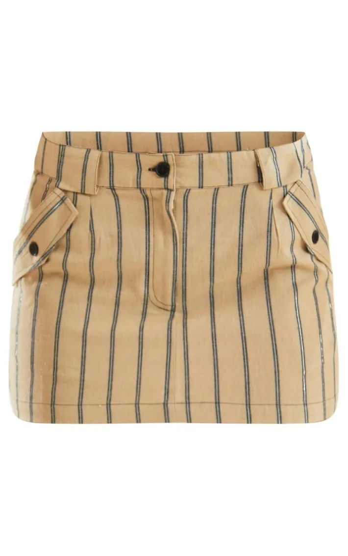 Earn some serious style points all season long with this stone striped cotton micro mini cargo skirt. Brought to you in a stone hue striped cotton material with a cargo design and a micro mini fit, what more could you need? Style this cargo skirt with a bandeau top, flatform sandals and a mini bag for an effortless off-duty look that can be dressed up or down to suit your weekend plans.