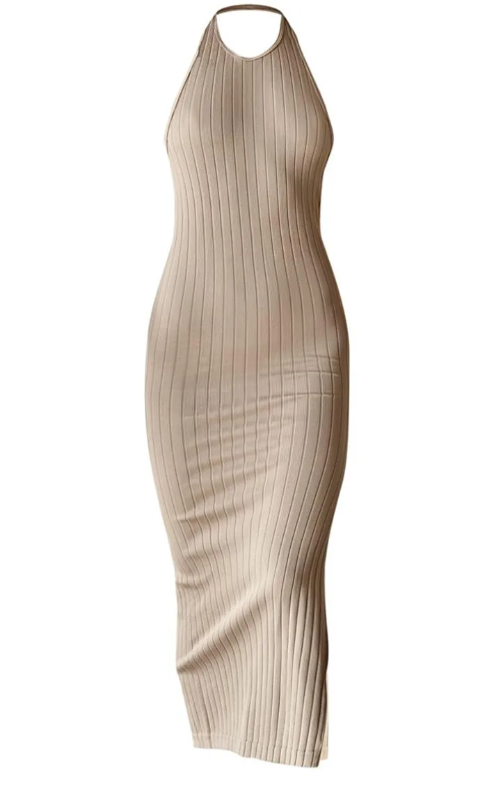 Add some of this season’s must-have hues into your wardrobe with this stone-structured snatched rib halterneck scoop maxi dress. Brought to you in a stone structured snatched rib material with a halter neckline and a figure-flattering fit, we know you won’t be able to resist. This maxi dress is perfect for all your styling needs. Whether you want to switch up your off-duty ‘fit with this dress and box-fresh sneakers or dress it up for the weekend with some clear heels and your fave accessories.