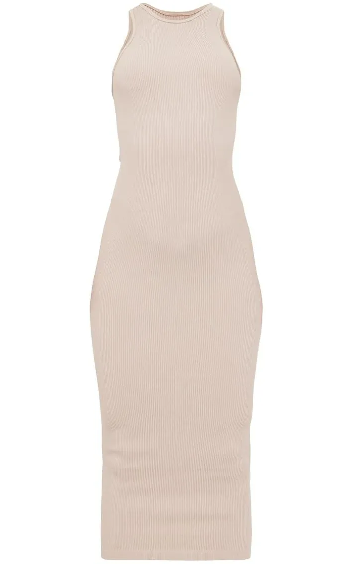 Add some neutral hues to your look with this midaxi dress. Featuring a stone ribbed material with a racer neck design and a midaxi length, we are obsessed. Team this with sandals and hoop earrings to complete the look.