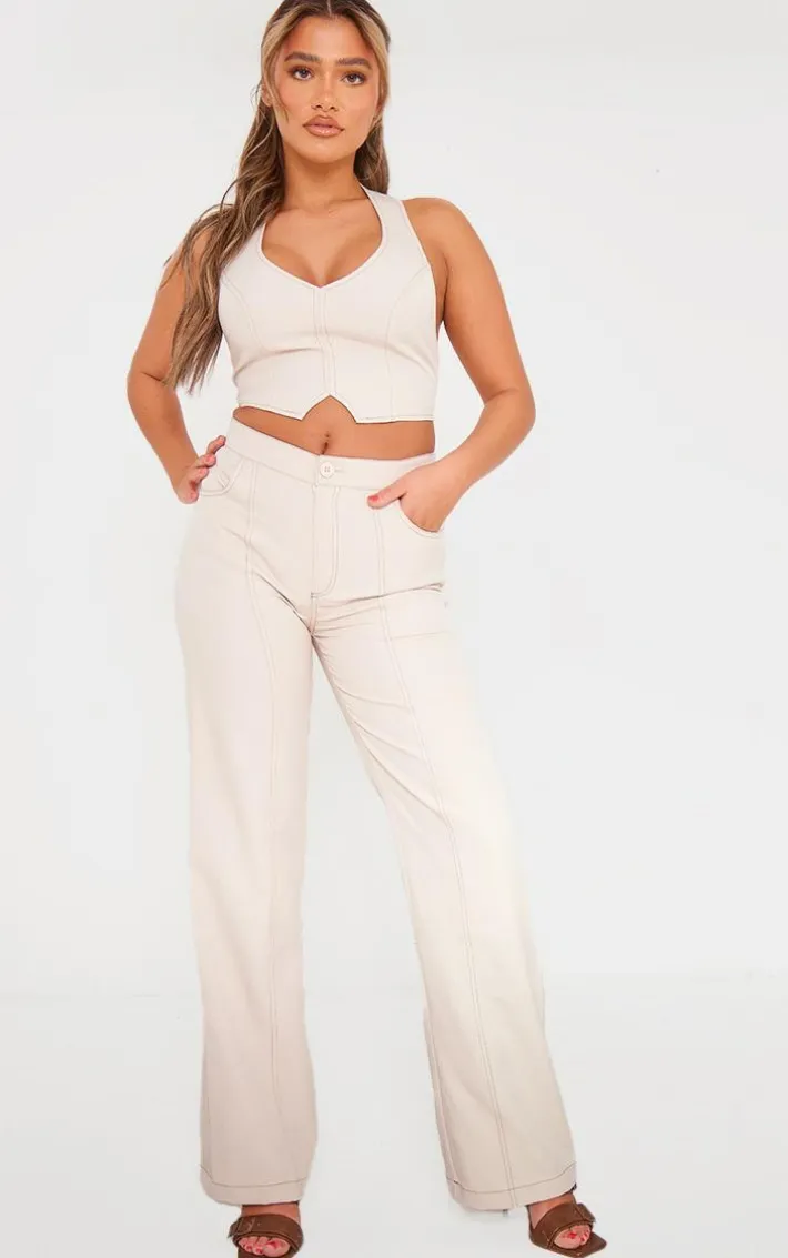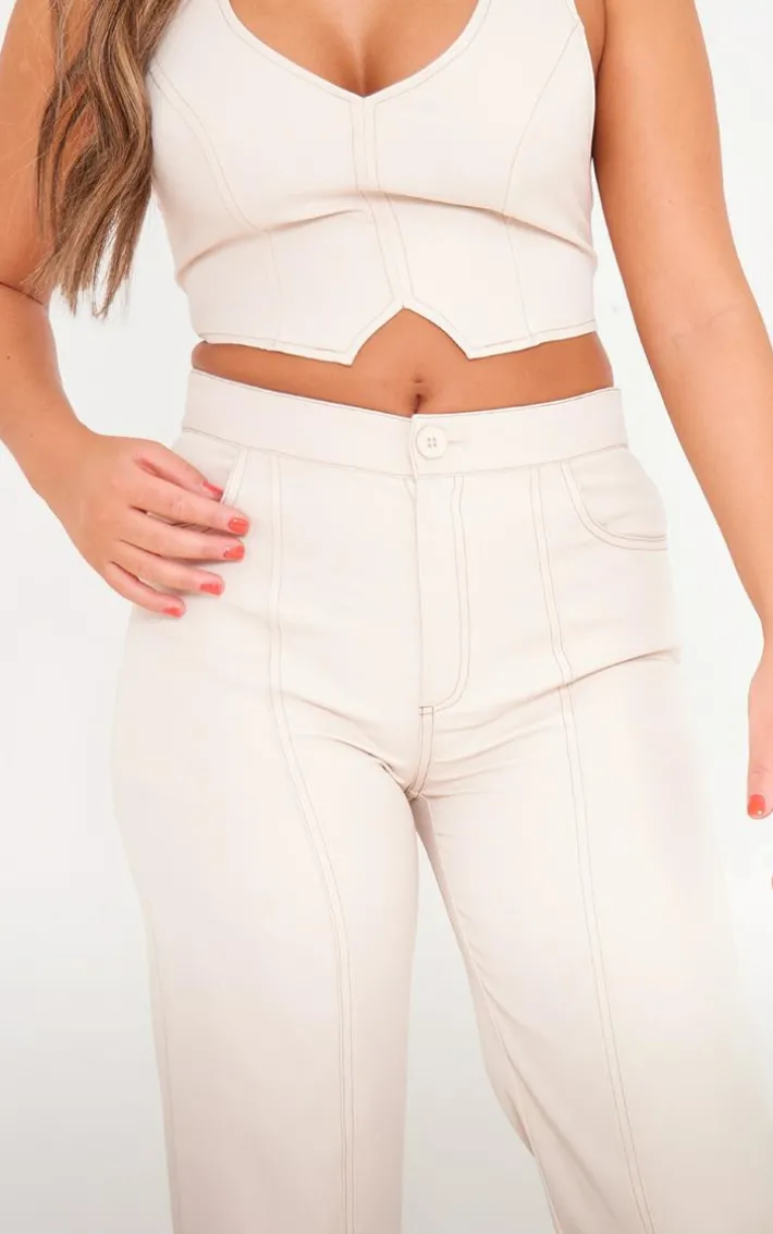 Give your new season wardrobe the chic upgrade it deserves with these stone tailored contrast stitching seam detail wide leg pants, you won’t be able to resist. These pants feature a stone material with contrast stitch detailing and a wide leg design. Style with the matching top, heels and your fave accessories for a flawless finish.