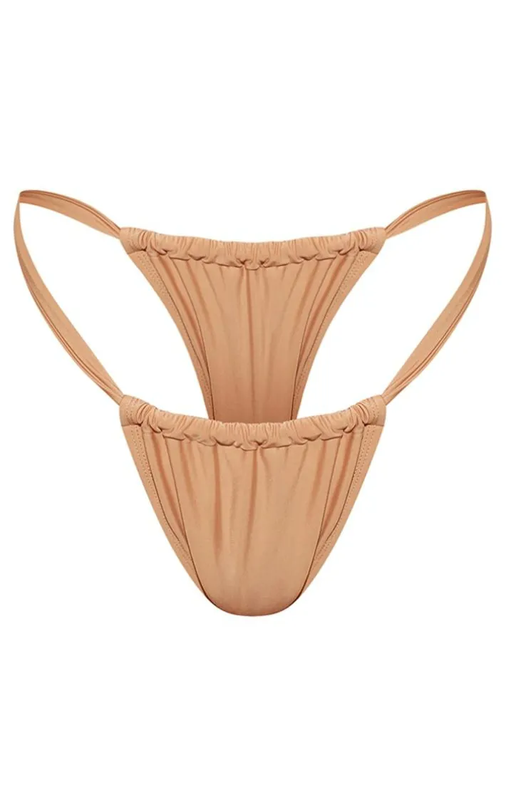 Make everyone stop and stare in this stone tanga ruched bikini bottoms. Made from a stone tange material with ruched detailing and figure-flattering fit these bikini bottoms have everything you have been searching for and more. Whether you’re relaxing by the pool or by the beach, these bikini bottoms are sure to turn heads. Simply add your fave accessories and the matching bikini for a look that will be unforgettable.