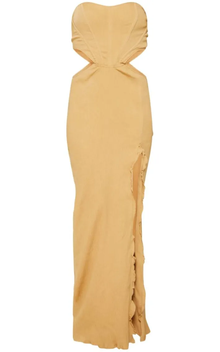 Channel all the chic vibes this weekend with this stone-textured corset cut-out lace-up maxi dress. Its stone textured material is super flattering and its cut-out design adds a glam touch to your look. This maxi dress also features lace-up detailing which is perfect for giving your look that extra edge. For that dreamy weekend-worthy finish, team with clear heels, gold accessories and a mini bag.