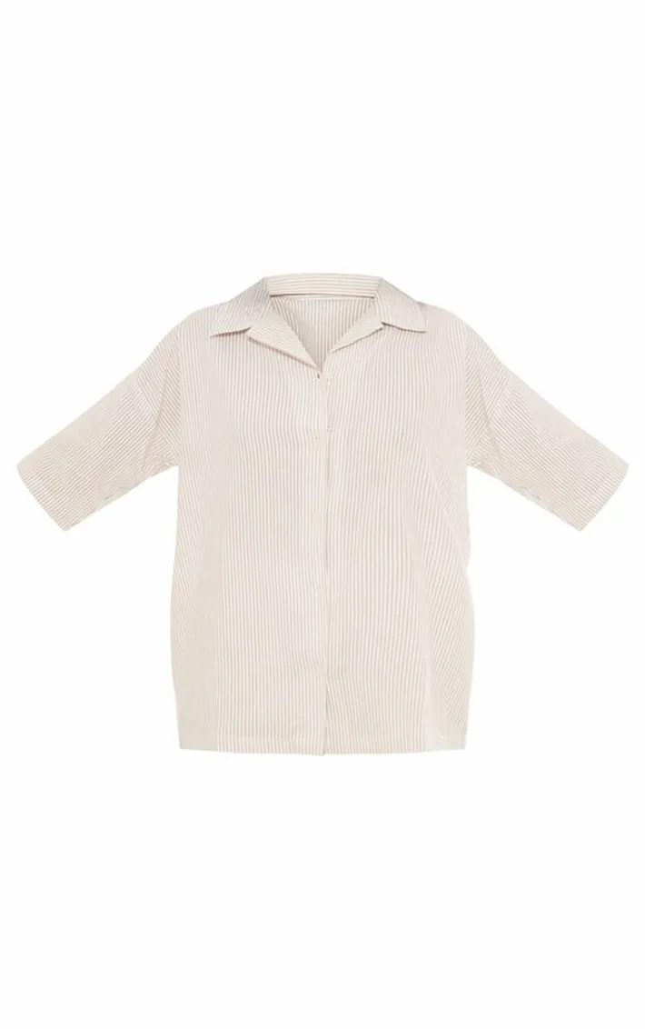 Make sure your new season look stays on point with this stone textured linen look striped oversized short sleeve shirt. Brought to you in a stone hue textured linen look material with a striped design, a button up fastening and short sleeves, how can you resist? Pair this oversized shirts seamlessly with the matching shorts and some on-trend western-style boots for a look you will be reaching for all season long.