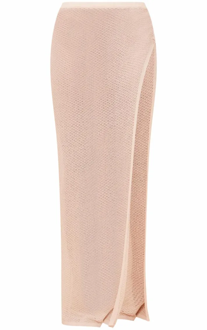 Bring all thew neutral hues to your new season wardrobe with this stone textured sheer knit ruched side maxi skirt. Made from a stone hue textured sheer knit material with a ruched side design and a flattering maxi fit, how can you resist? Style this maxi skirt with the matchig top, heels and gold accessories for a simple yet chic look we just can’t get enough of.
