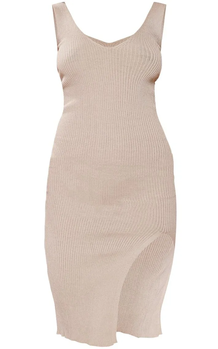 This knitted dress is a must for your new season wardrobe. Featuring a stone knit material with a V neckline and side split, we are obsessed. Style this with chunky boots and a maxi puffer coat to complete the look.