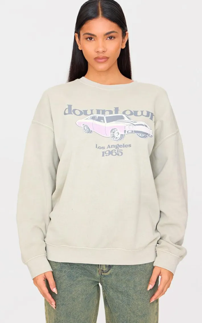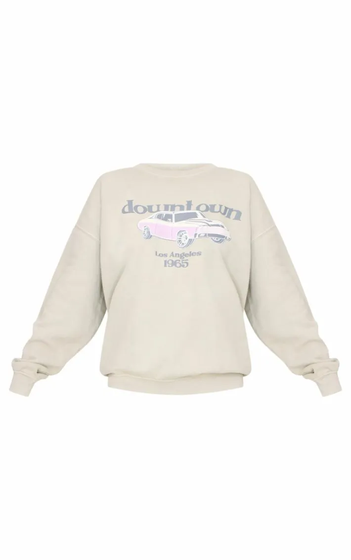 Your laid back collection just got elevated with this stone washed downtown car printed sweatshirt. Brought to you in a stone washed hue material with a ‘Downtown’ car printed design, this sweatshirt is all the new you need. Style with blue jeans, fresh kicks and simple accessories for an off duty look we’re loving.