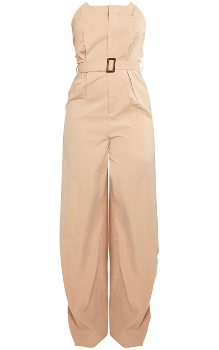 Take the stress out of weekend styling with this stone woven belted bandeau wide leg jumpsuit. Brought to you in a stone hue woven material with a bandeau neckline, belted detailing and a wide leg fit, how can you not fall in love? Style this stone jumpsuit with heels and gold accessories for a look they won’t be able to take their eyes off.