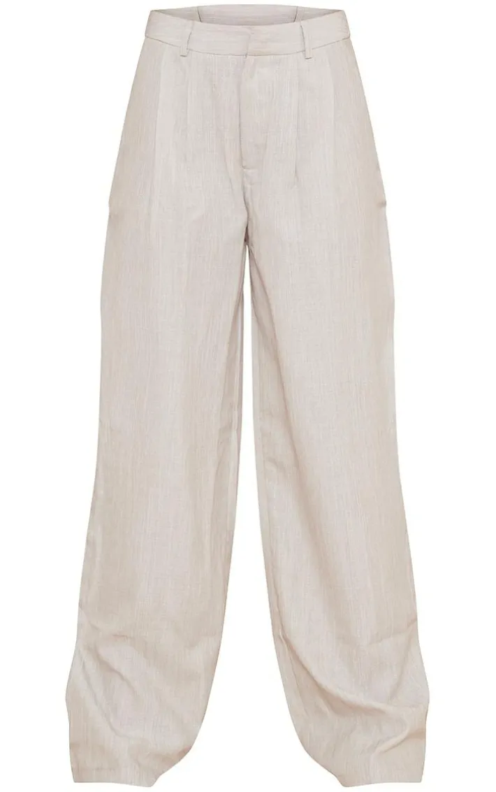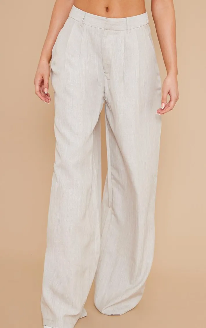Give your wardrobe a chic update with these tailored bottoms. Featuring a stone hue woven linen feel material with a high waist design and a wide leg fit. Style with a bralet, oversized shirt and heels for a look that will earn you some serious style points.