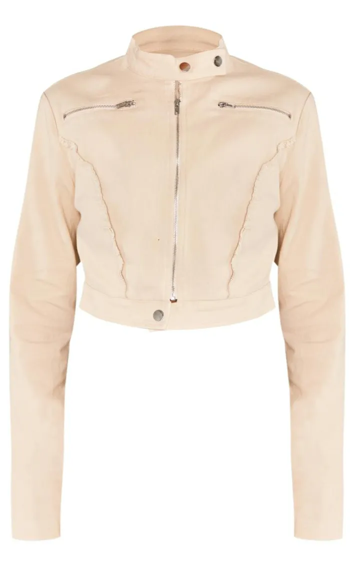 Take your style to a whole new dimension with this stone woven twill raw edge seam detail cropped jacket which will have you looking on trend season after season. This jacket is brought to you in a stone woven material with a raw edge and a zip-up front, what’snot to love? This jacket with It’s cropped length makes it the perfect staple piece for your AM to PM styling. Simply wear this with the matching bottoms, high heels and sunnies for a look that we can’tstop crushing on.