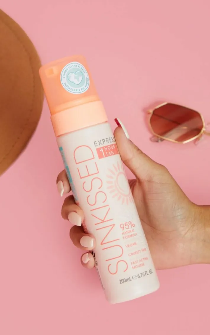 Speed up your tanning process with the Sunkissed Express 1Hour Tan. This light weight tinted mousse is easy to apply and contains an active ingredient that accelerates the tanning process so youll start to see your tan develop in just 1 hour. Your tan will continue to darken the longer you leave it, achieving Ultra Dark after 8 hours. Once washed off your tan will remain for up to 5 days. moisturising ingredients Aloe Vera and Glycerine help to leave your skin feeling super smooth and hydrated and your tan will last up to 5 days.