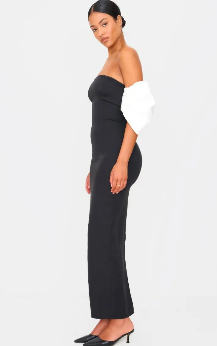 This tall black bow detail bodycon midaxi dress is perfect for your next occasion. Made froma black material withbow detailing, a bardot neckline and a figure-flattering fit, how can you not fall in love? Style this black dress with court heels and simple accessories for a look they won’t be able to take their eyes off.
