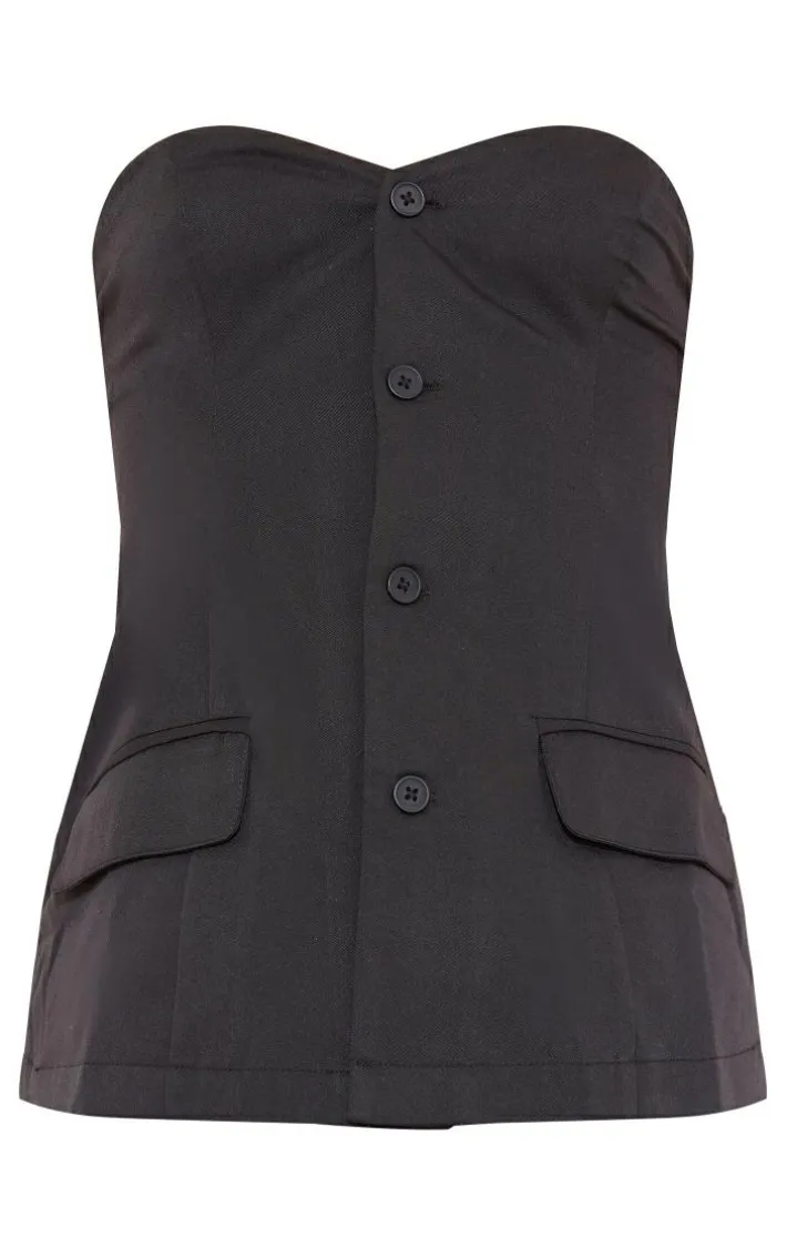 Look all kinds of chic in this tall black button up front corset top. Brought to you in a black hue material with a button up front design, a bandeau neckline and a figure-flattering corset fit, how can you not fall in love? Style this tall corset top seamlessly with the matching pants, glam heels and a statement clutch bag for a weekend-worthy look that is sure to steal the stares for all the right reasons.