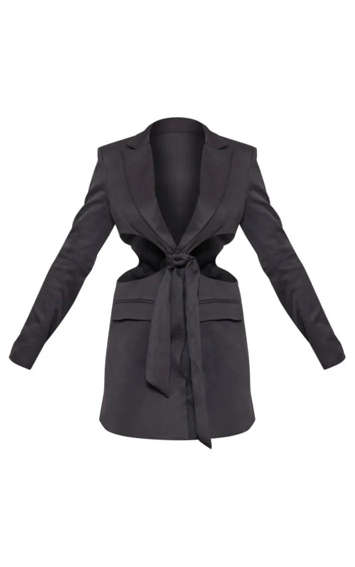 Steal all the stares this weekend with this tall black cut out detail blazer dress and be sure to earn all the compliments. Whether it’s date night with someone special or plans , this tall blazer dress is sure to nail the dress code. With a black hue material, cut out detail and a knot design, what’s not to love? Style effortlessly with statement accessories and strappy heels for a fiercely feminine finish.