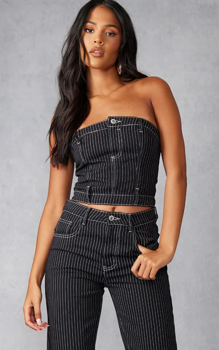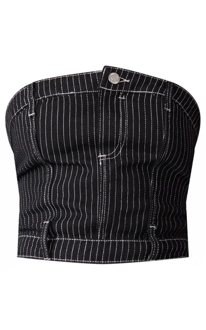 Give your new season wardrobe the ultimate chic upgrade it deserves with this tall black denim pinstripe corset top, it is perfect for your upcoming weekend plans and beyond. It features a black denim material with a pinstripe design and a figure-flattering corset style, what’s not to love? Pair this tall corset top with the matching jeans, slip-on heels and your fave accessories for a look we’re obsessing over for your next night.