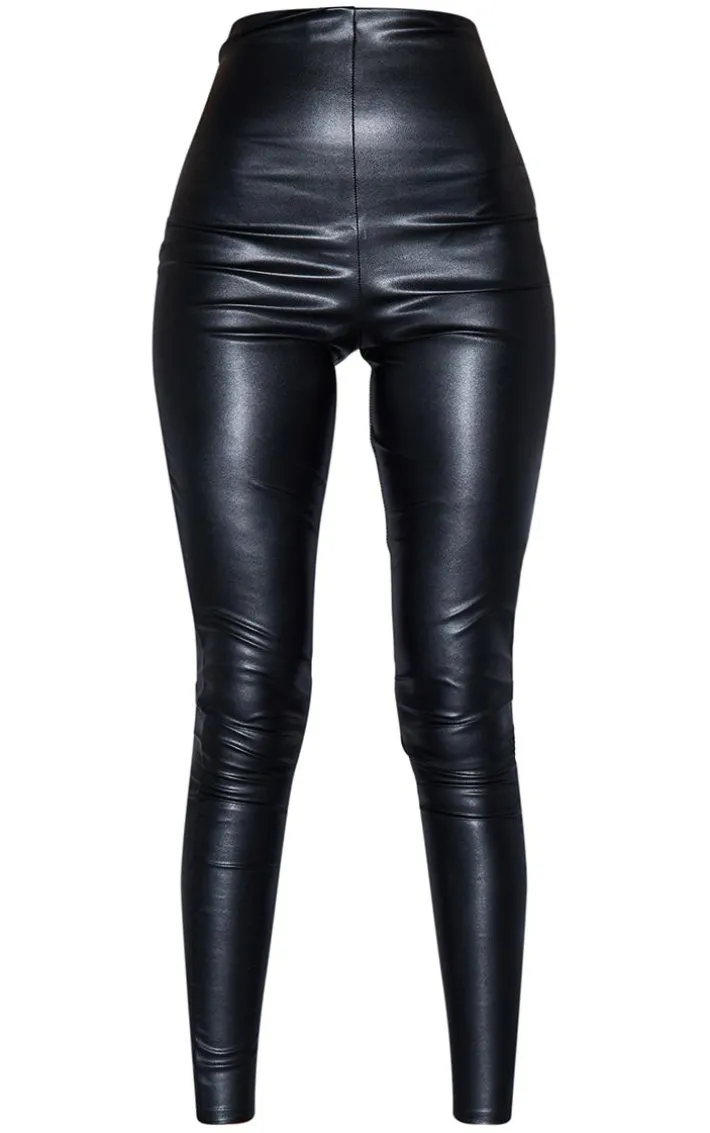 Update your new season wardrobe with these must-have leggings. Featuring a black faux leather material and figure hugging fit, team these with ahigh neck long sleeve top and strappy heels for a night out.
