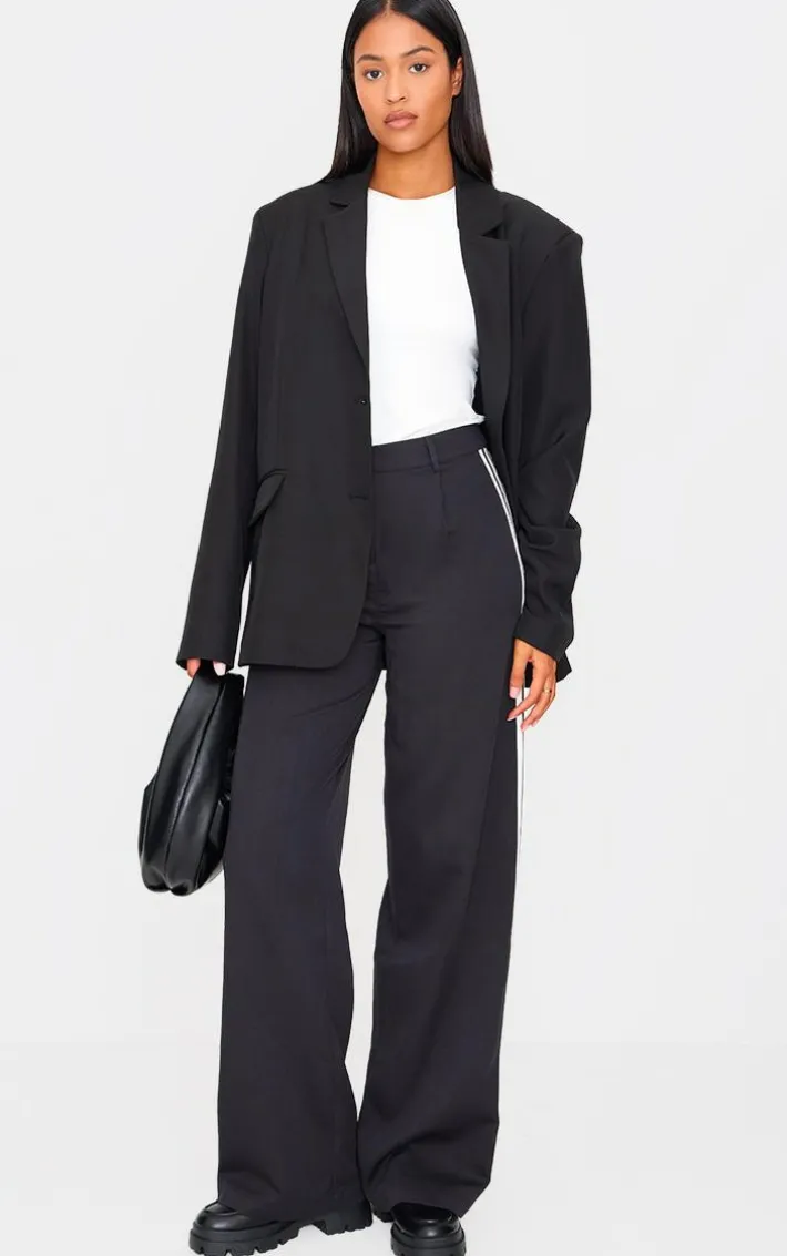 Elevate your chic styling with these tall black side stripe tailored wide leg pants. Brought to you in a black hue material with a side stripe detail and a tailored fit, these wide leg pants are all the new you need. Style with a white tee, loafers and simple accessories for a look like no other.