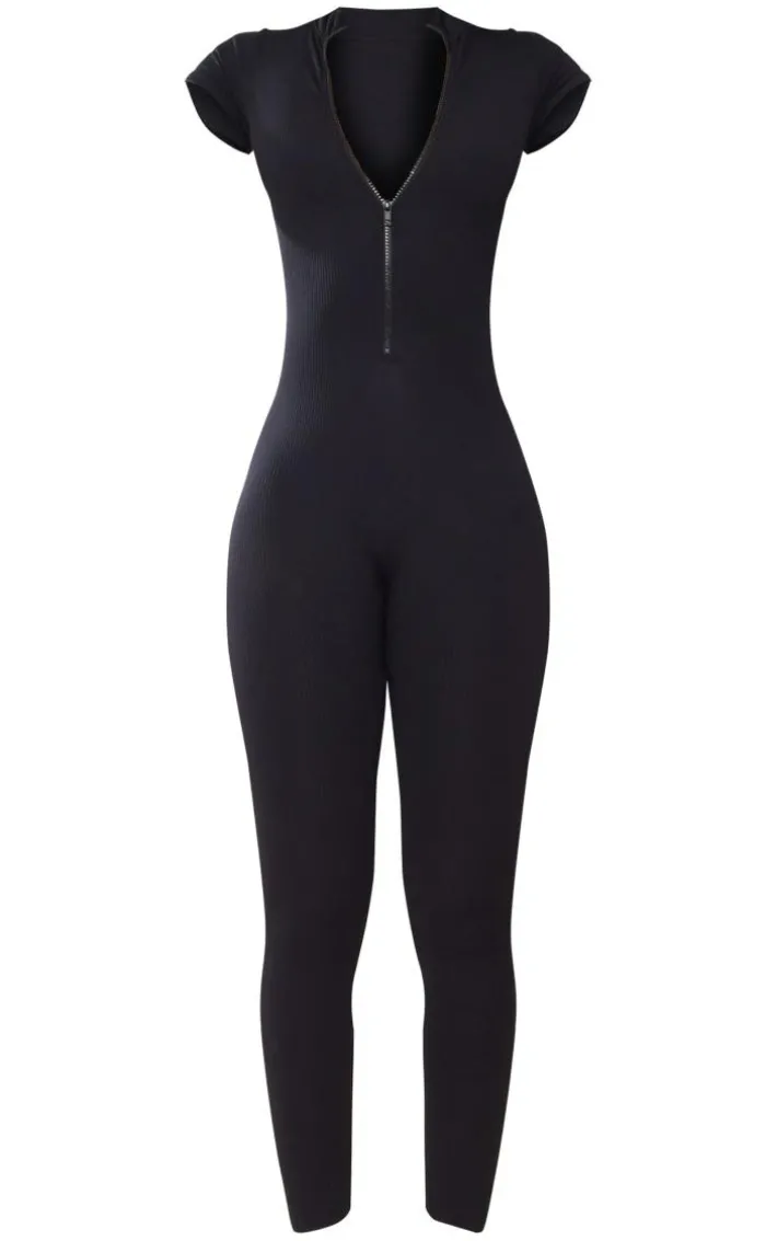 Jumpsuits are so on trend this season and this tall black structured snatched rib short-sleeve jumpsuit is just what you need. Its black snatched rib material is seriously flattering whilst its zip-up detail expresses your daring side by giving you a plunging neckline. This jumpsuit is perfect for those off-duty days with its short sleeves and figure-hugging fit. Keep your look seriously chilled with box-fresh sneakers and a hoodie.