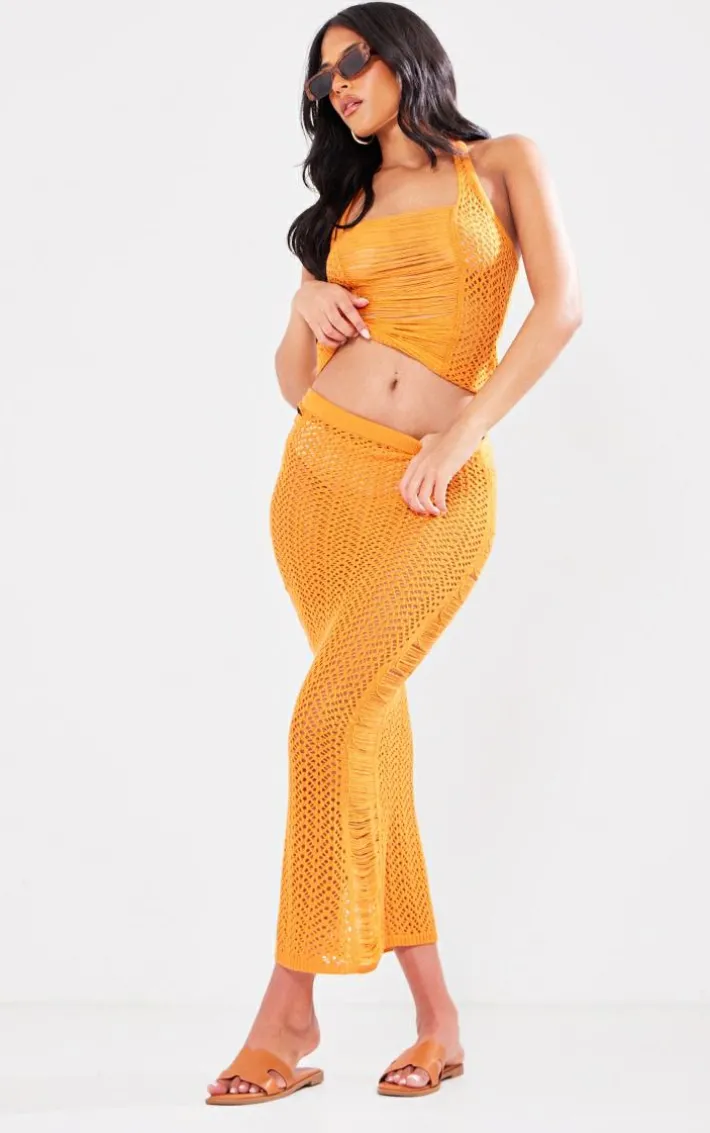 Dare to make a statement this season with this tall burnt orange open knit distressed detail halterneck top, we’re obsessed. With a burnt orange open knit material a distressed design and a halterneck style, this tall top is here to solve all your styling dilemmas. Just add the matching skirt, heels and your fave accessories to have you standing out from the crowd.