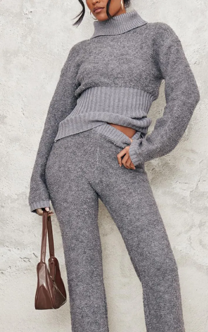 Look all kinds of chic in these tall charcoal contrast textured knit pants. Brought to you in a charcoal hue textured knit material with a contrast detail, these pants are all the new you need this season. Team with the matching sweater, fresh kicks and burgundy accessories for an on-trend look.