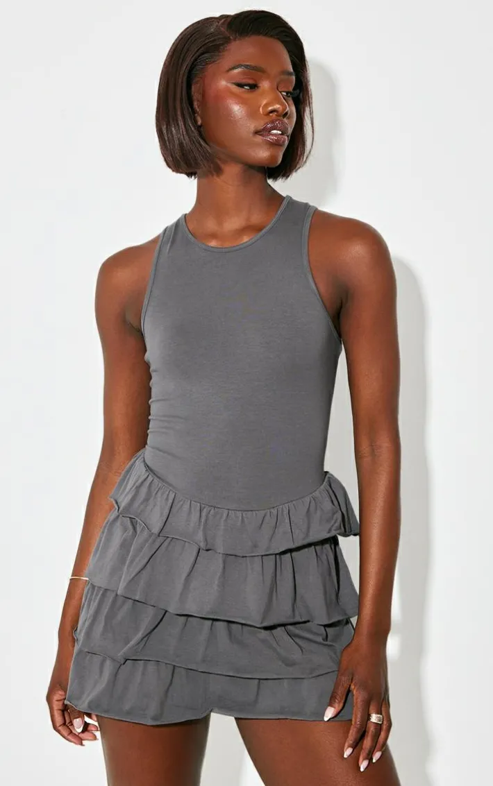 Put together an effortlessly chic look with this tall charcoal frill shift dress. We’re obsessed with its frill detail, charcoal hue material and mini length, so why not add this shift dress to your basket? Just add a clutch bag, heeled sandals and your go-to jewelry for a combo we’re crushing on.