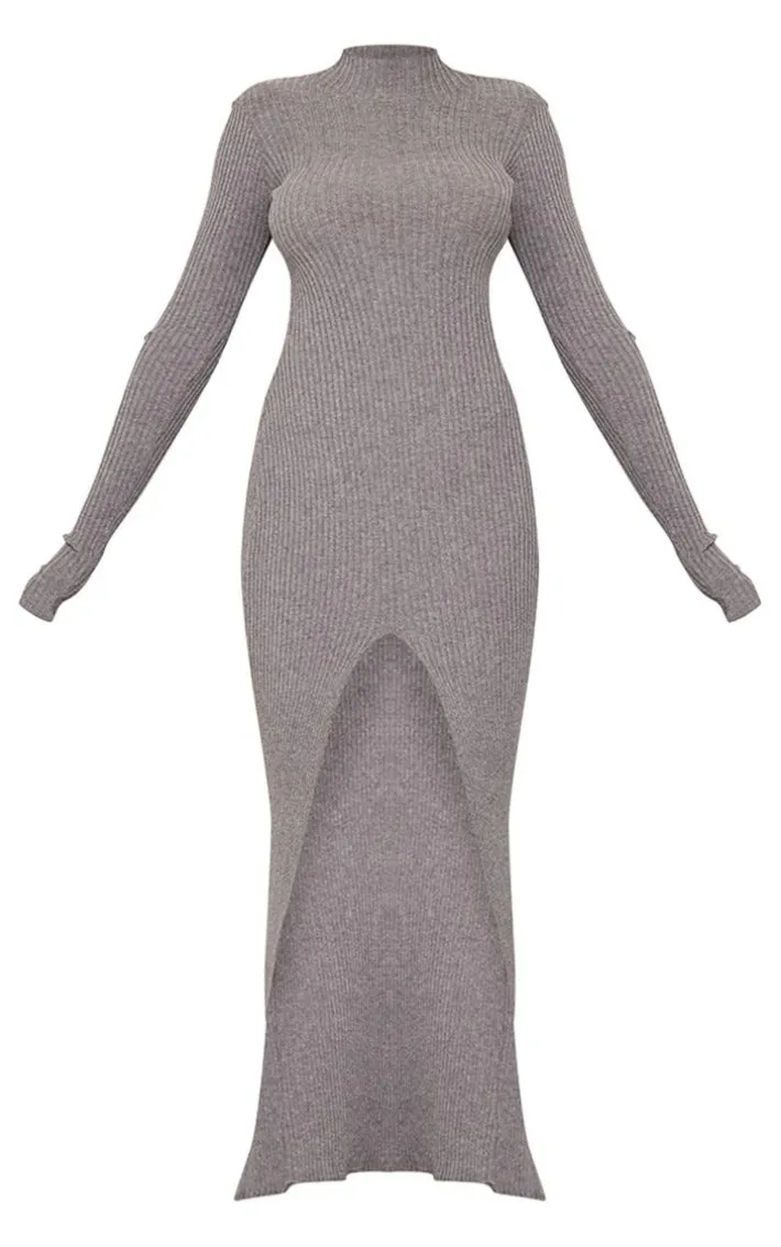 Meet your new season wardrobe essential with this tall charcoal knitted ribbed side split maxi dress, it’s a definite yes from us. With a charcoal hue knitted ribbed material, a side split design and a maxi length, this tall dress is here to solve all your styling dilemmas. Pair it with slip-on heels and a shoulder bag for a flawless finish.