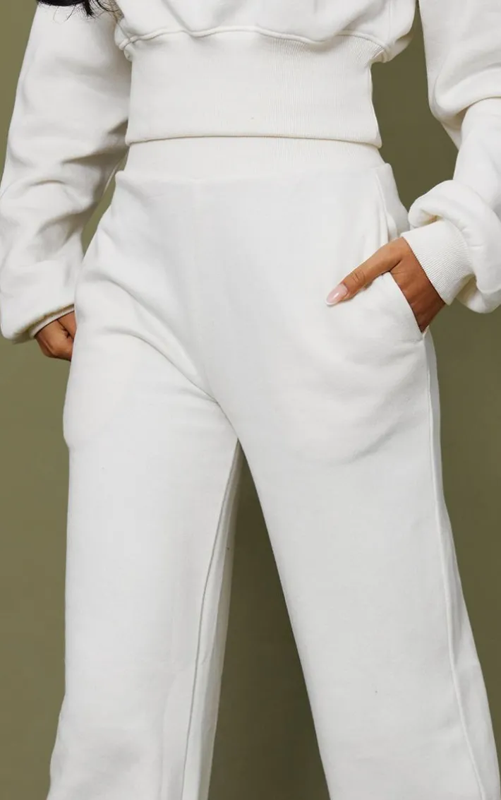 Hit refresh on your new season wardrobe with these tall cream high waist flared sweatpants. They’re the ultimate essential to style seamlessly with your existing wardrobe pieces. These sweatpants include a cream material with a high waisted design and a flared fit, you’re sure to be in love. Team these tall women’s sweatpants with the matching top, a maxi teddy coat and chunky kicks for a chic, blogger-worthy vibe.