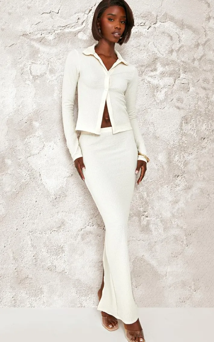 Set major trends this season with this tall cream textured button maxi skirt. Brought to you in a cream textured material with a button fastening, what more could you want? Its maxi length will have you feeling effortlessly chic all season long. Team with your fave accessories and a pair of heels for a fool proof finish we are loving.