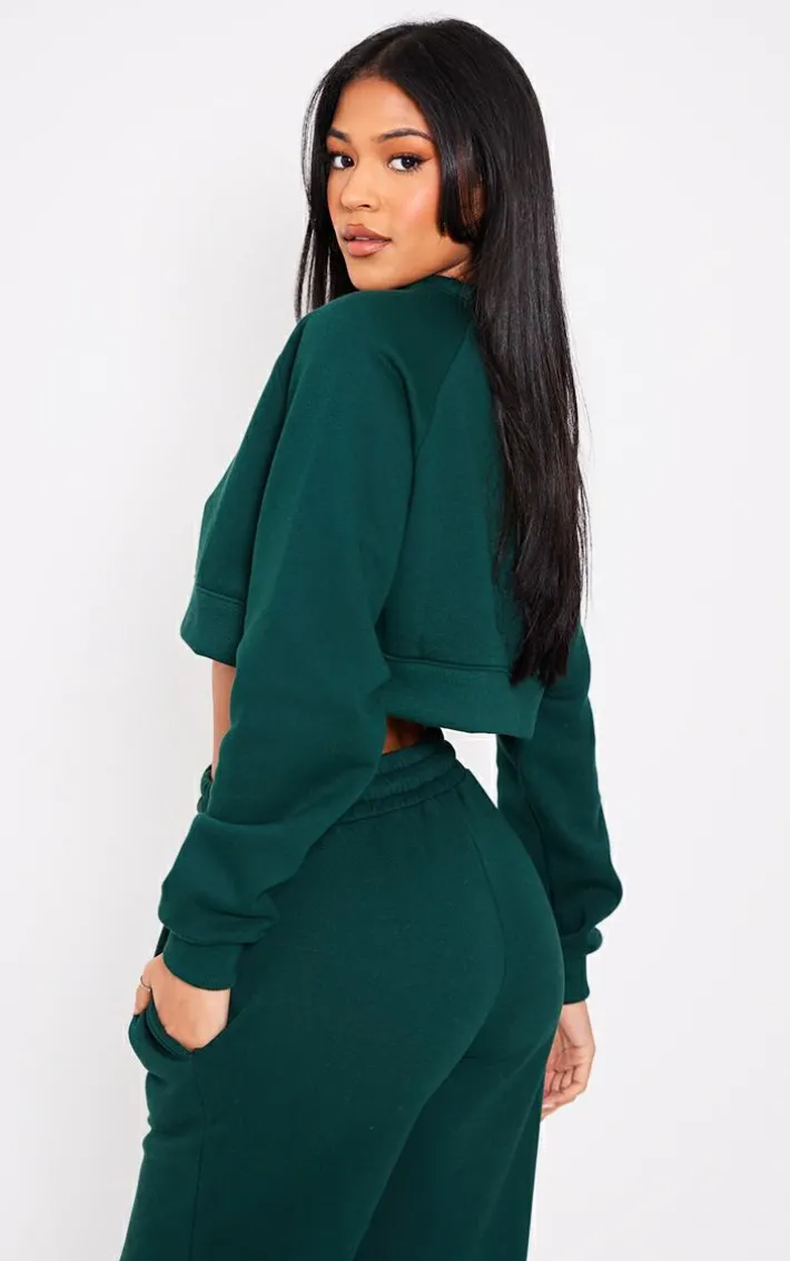 Be on trend this season with this tall dark green cropped long sleeve Sweatshirt. Brought to you in a dark green material with long sleeves and a cropped length, you will bring all the edge to your outfit of the day. This crop top is perfect for those on the go days. Team with the matching sweatpants, box-fresh kicks and accessories to be the Center of attention wherever you step foot this season.