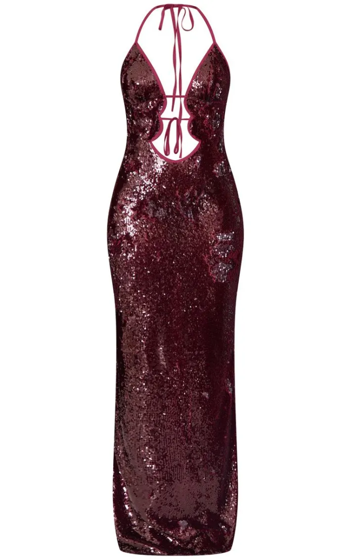Make a statement this season in this tall dark red sequin plunge halter neck maxi dress. Brought to you in a dark red hue sequin material with a plunge design and halter neckline, this maxi dress is a wardrobe staple you’re in need of. Style with slip on heels and simple accessories for an event-worthy fit we can’t take our eyes off.