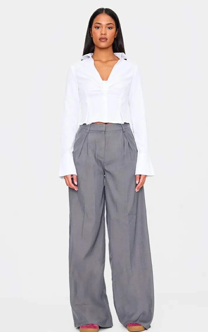 Elevate your everyday look with these tall grey high waisted wide leg pants. Brought to you in a grey hue material with a high waisted design and wide leg fit, these pants are a must have. How can you resist? Team with a white shirt, fresh kicks and simple accessories for a chic finish. It’s a yes from us.