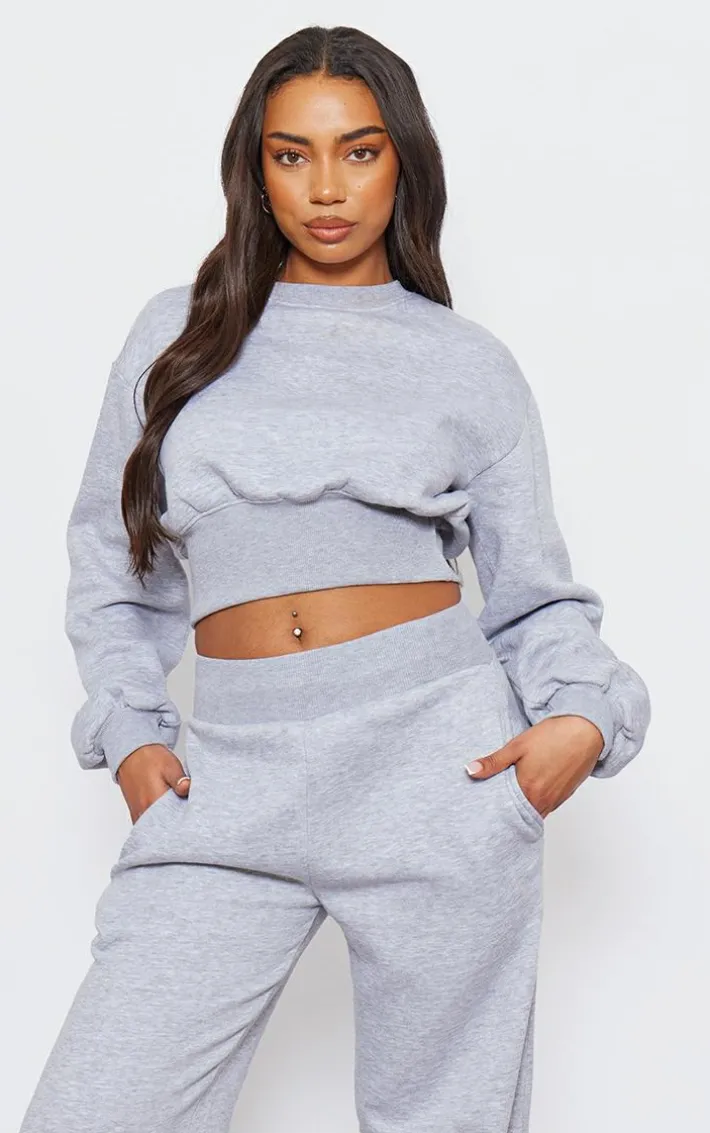 You won’t have to sacrifice comfort for style with this tall grey marl cropped oversized Sweatshirt. Brought to you in a grey marl material with a cropped length, and a seriously comfy fit, you really can’t go wrong. Pair this oversized sweater with the matching bottoms and a pair of sneakers for a look perfect for those laid back days and beyond.