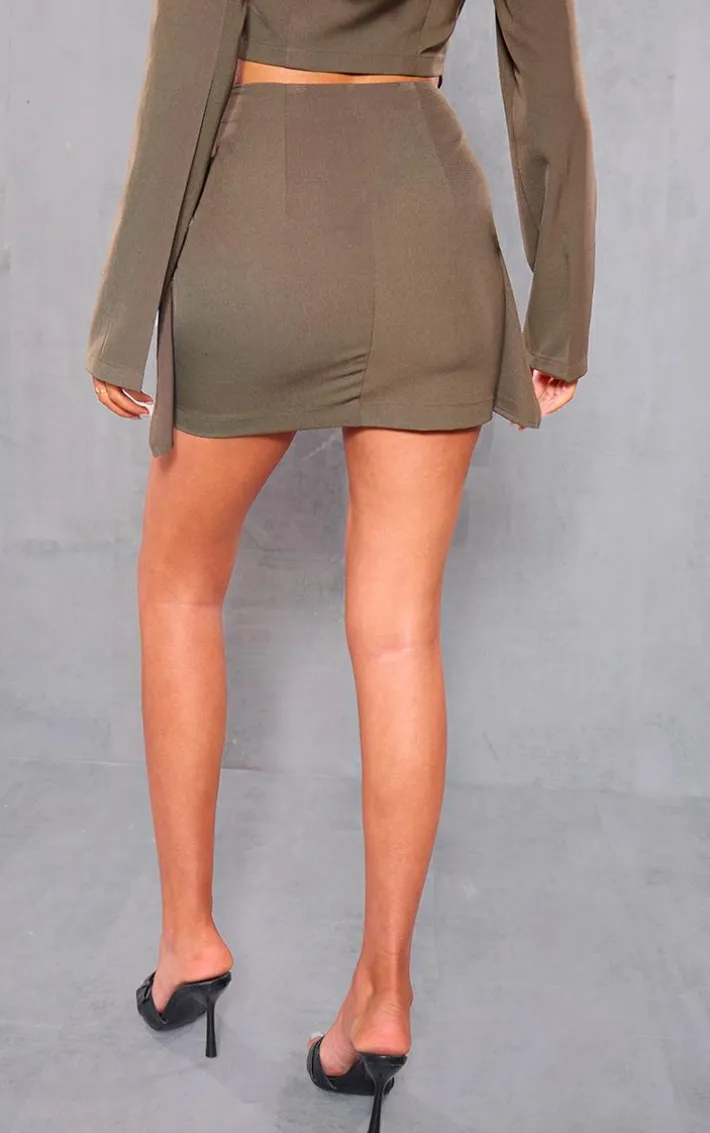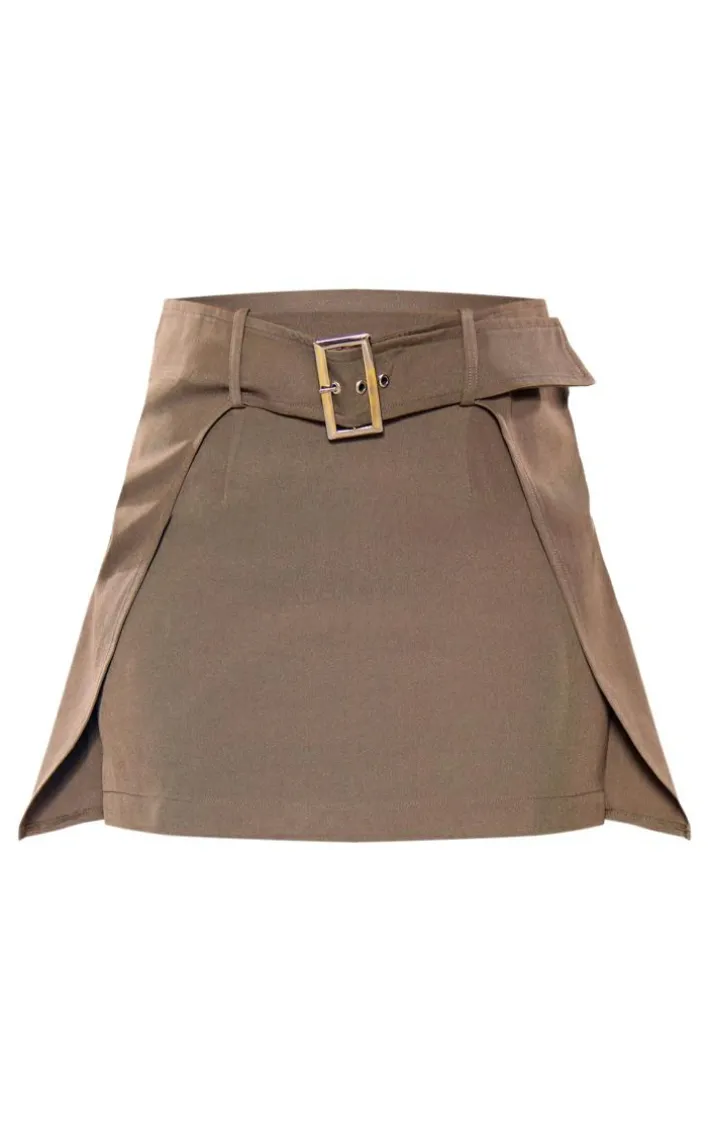 Take your weekend style game to a whole new level with this tall khaki belted detail woven mini skirt. Brought to you in a khaki hue woven material with belted detailing and a mini fit, what more could you want? Pair this mini skirt effortlessly with the matching blazer, slip-on heels and a mini bag for a look that is sure to have all eyes on you no matter what your plans.