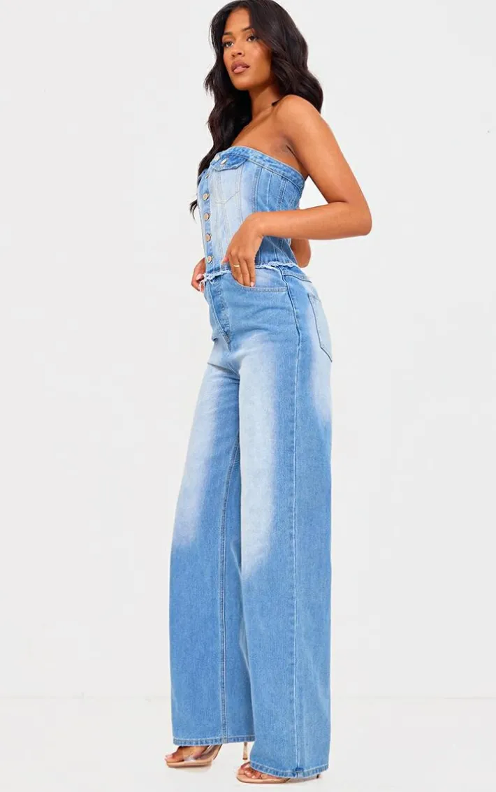Switch up your new season style game with this tall light blue wash button up bandeau denim jumpsuit, we’re in love. This tall jumpsuit features a light blue wash denim material with a button up design and a flattering fit, it is perfect for dressing up or down. Pair this denim jumpsuit with heels and your fave accessories for an instant chic finish.