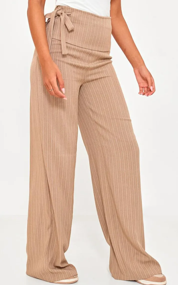 We’re all about neutral hues this season and these tall light brown pinstripe tie side tailored wide leg pants are here to solve all your styling dilemmas. With a light brown pinstripe material a tie side and a wide leg fit, you won’t be able to resist these pants. Team this with a white crop top, box-fresh kicks and accessories for an effortlessly chic look everyone will be asking about.