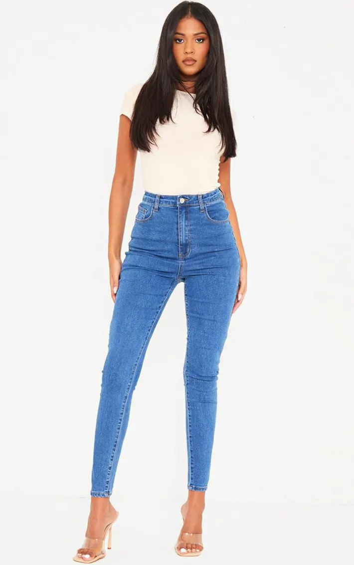 Say hello to your newest styling saviour with these PrettyLittleThing tall mid blue wash 5 pocket skinny jeans. Made from a mid blue wash denim material with 5 pocket details and a skinny fit, they are an absolute wardrobe essential. Perfect for dressing up or down you won’t be able to say no to these skinny jeans. Team with a basic top and clear heels to take your look from day to night.
