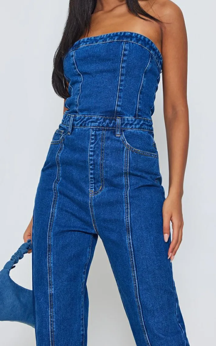 We are obsessed with this tall mid-blue wash bandeau straight-leg denim jumpsuit for your weekend look. Its mid-blue wash denim material brings all the chic vibes to your look and the bandeau neckline will give your weekend look a fresh touch. This jumpsuit is a must-have for whatever your plans are this weekend and is sure to gain you some compliments. Keep this look super simple with clear heels and minimal accessories, what’s not to love?