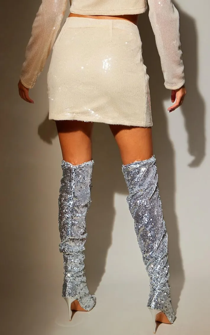 You need this tall nude pink sequin mini skirt in your collection. Brought to you in a nude material with pink sequin detailing, what more could you want? You are sure to have heads turning in this mini skirt. Style with the matching top and a pair of knee high heeled boots to get everyone talking no matter what the occasion.