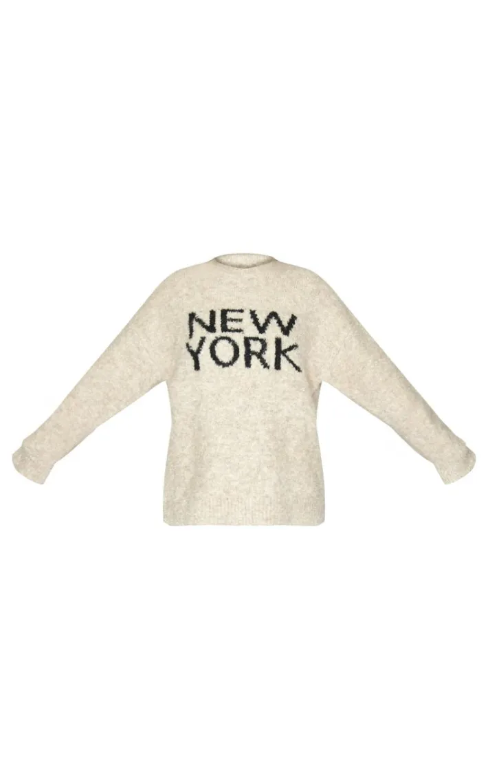 Make styling easy this season with this tall oatmeal new york boucle knit oversized sweater. Made from an oatmeal hue boucle knit material with a ‘New York’ detail and oversized fit, this sweater is all the new you need. Team with wide leg pants, fresh kicks and simple accessories.