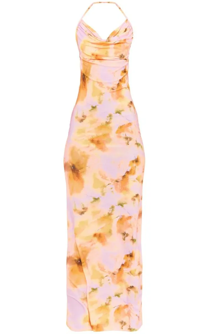 Bring all the feminine feels to your weekend plans with this tall pink floral print cowl neck maxi dress. Its pink floral print material adds some glam vibes whilst its cowl neck design is super flattering and is sure to gain you many compliments. This maxi dress is sure to steal all the stares this season and take your look from 0-100. Team with clear heels and gold accessories for a look that won’t go unnoticed.
