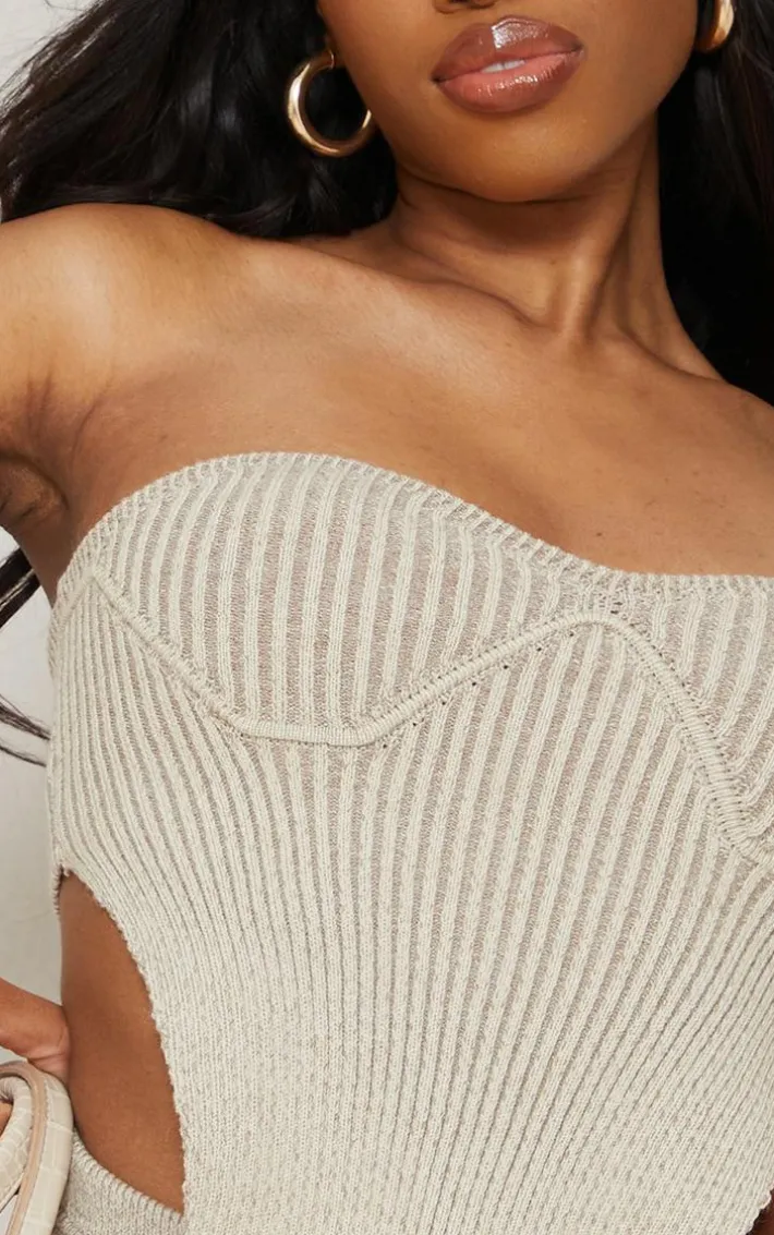 We are obsessing over this unreal top for your new season wardrobe and beyond. Featuring a stone knitted material with cup detail in a bandeau style. Pair with the matching bottoms and clear heels for an effortlessly chic finish.
